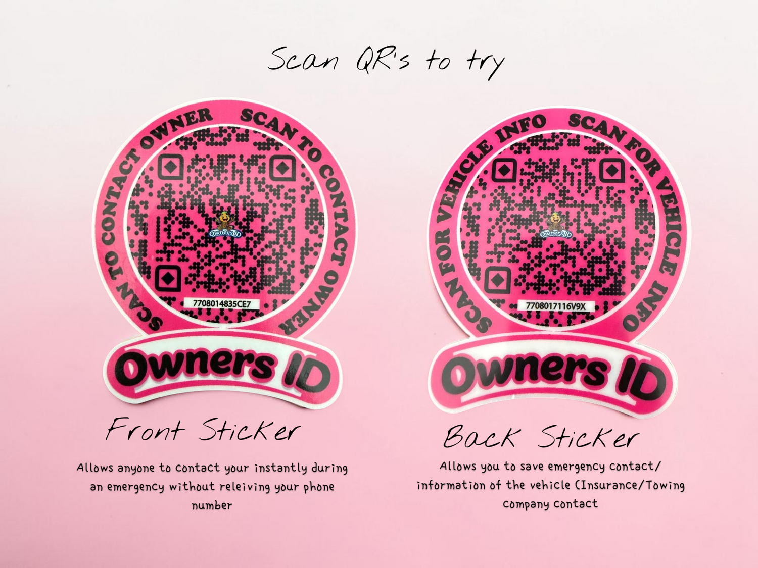Smart Owners ID QR Car Sticker - Stealth Design (Inside Windshield) | Double-Sided QR Code | Scan to Contact Owner Without Phone Number | Emergency Contact & Vehicle Info Tag