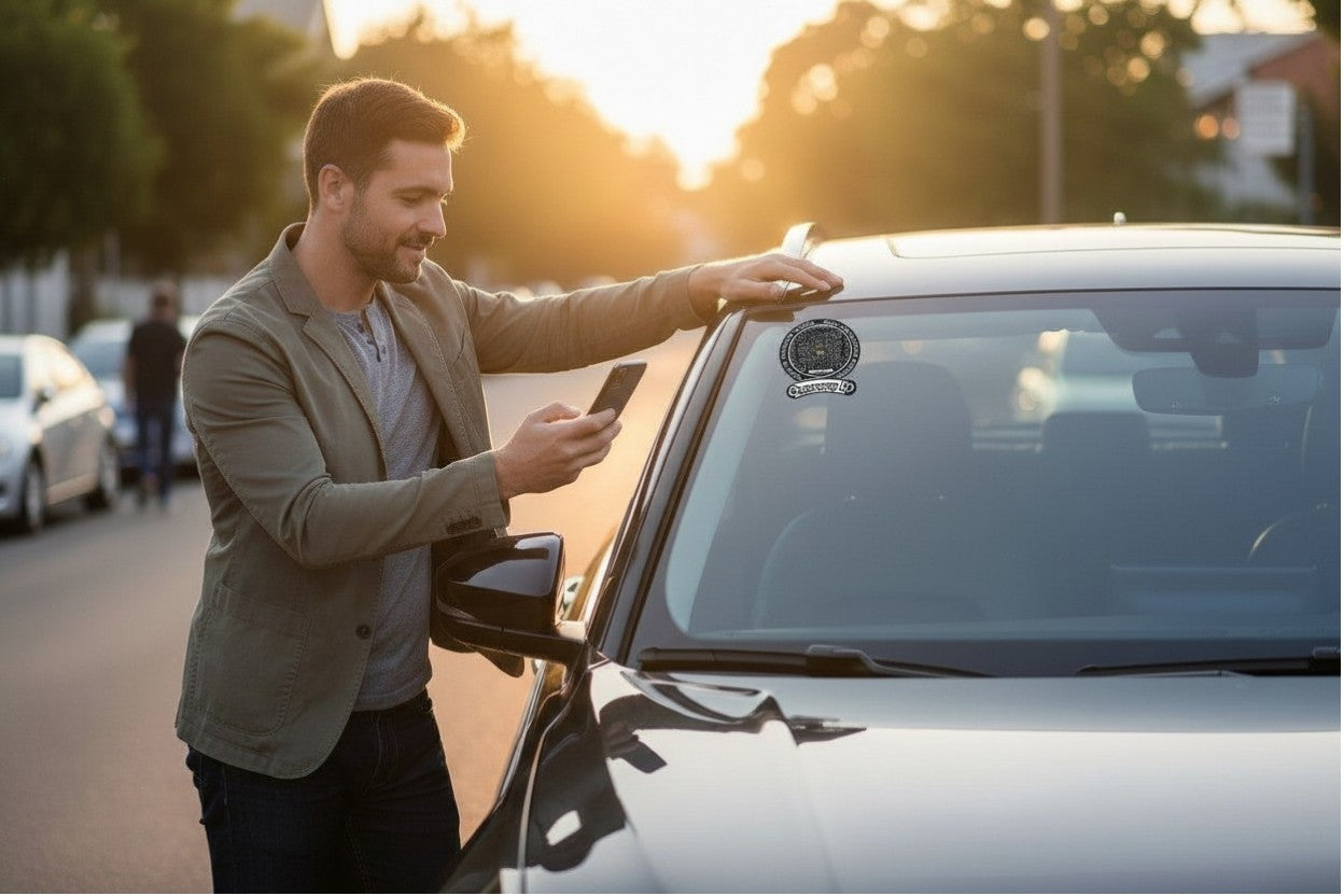 Stealth Car Sticker is a 2 ways QR tag that allows anyone to contact you if your vehicle is lost, blocked, damaged, or involved in an emergency — without revealing your phone number.